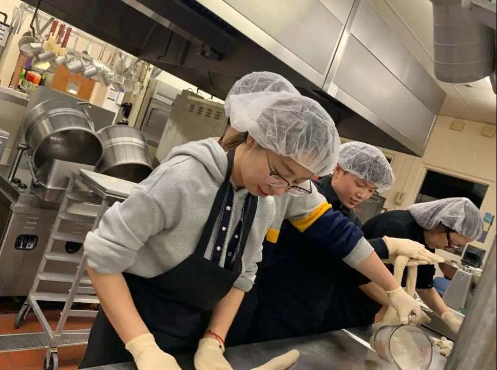 日期定下来后,13人团队立即行动起来,大家积极主动报名参与各项任务。刘子文同学负责安排各项活动计划及细节,他与郑君壮、王杉杉同学三天内完成了宣传单的设计、制作、印刷与发放,并交付林肯学院宣传部门及时在官方推特发出。此外,他们还精心制作了活动当天的展板、捐款箱。王冰、徐培文与王杉杉、李天贺、郑君壮、唱畅、刘国瑞、张子禾、智心洁、张熙朗、刘皓泽9名学生星夜奋战,完成了饺子和汤圆的制作任务。即使面粉花了脸,汗水浸透了衣衫,他们依旧不觉疲惫,大家都为了同一个目标倾情投入、全力以赴。