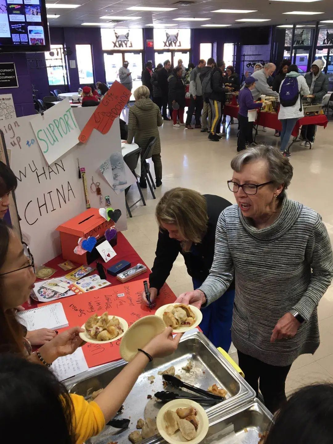 当天中午,13名师生连续两个夜晚制作的1500个饺子、300个汤圆出现在林肯学院学生餐厅。往来就餐的师生纷纷在写有“武汉加油、中国加油!”的海报前驻足观看,在一旁的签名版上写下祝福,并将自己的一份爱心投入捐款箱。为表示敬意和感谢,我校师生将紧急准备的150份中国特色礼物回赠捐款师生,一时间,餐厅里暖意浓浓、温情四溢。