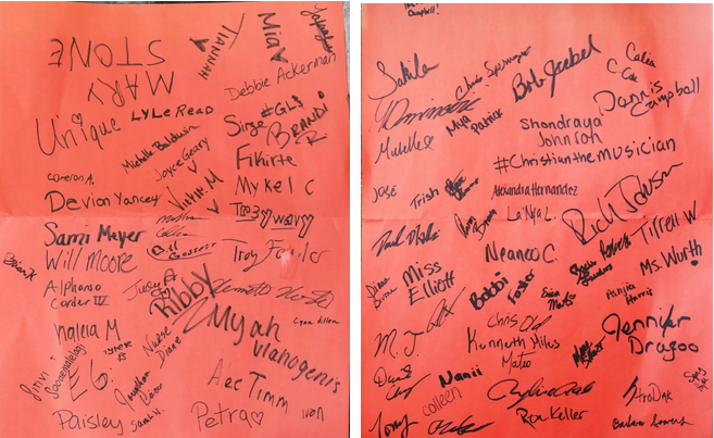 从活动开始到结束,每个时间段都有学生值班,迎接师生、准备食物、分发礼物……他们始终面带微笑,坚守在岗位。“感谢你们为今天的午宴所做的准备,你们的努力让我很感动,希望疫情能够快点结束。”林肯学院生命与地球专业教授坎贝尔博士捐款后,为我校师生的付出点赞。94岁的林肯学院校友、前董事会成员比尔捐款后转身要走,值班学生连忙请他挑选礼物,他收下礼物十分开心,再次献出了自己的爱心。看到林肯学院师生写下的诚挚祝福,听到一声声加油鼓励,大家感动之余,更充满了信心。