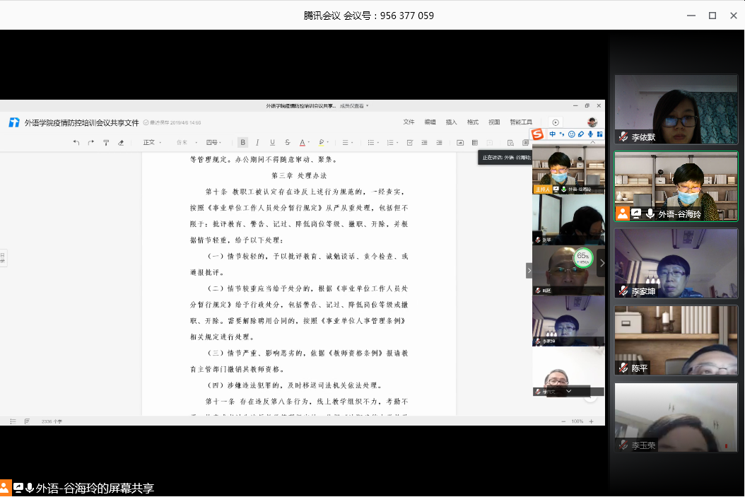 2020年5月11日,竞猜网APP官方下载召开疫情防控知识培训及复学准备工作网上视频会议,会议由学院党总支书记主持,全院教职工参加线上会议。