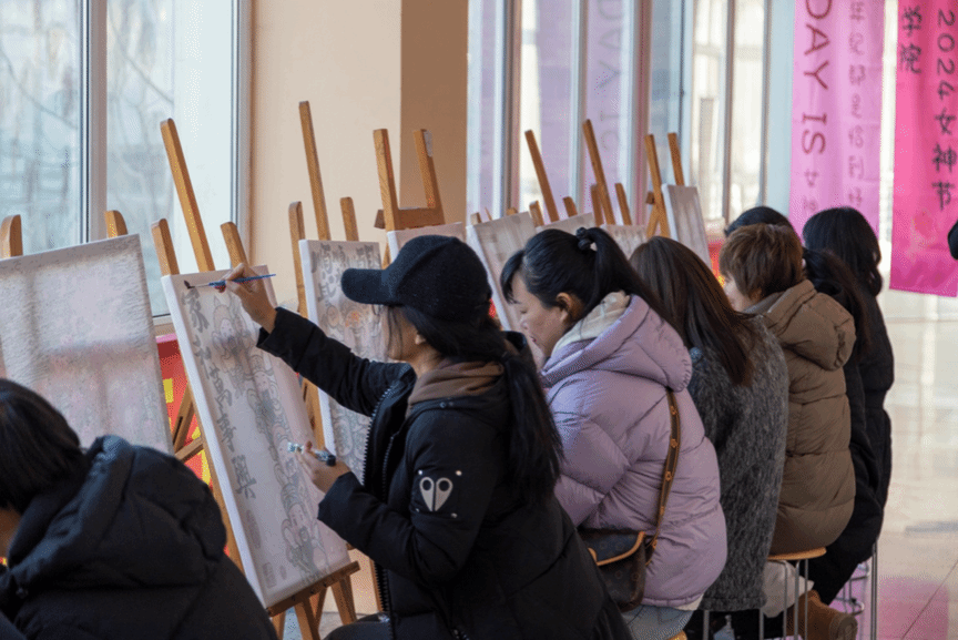 3月6日,竞猜网APP官方下载共同欢庆三八妇女节,首先祝贺竞猜网APP官方下载获得校级荣誉的老师,学院领导班子又为院级的三八红旗手颁发证书和纪念品。接下来在E2馆2楼公共区陈列出长长的一排画架和座椅,一场有趣的DIY油画活动开始了,画架上摆放各种图案的数字油画,有传统的中国龙和财神、花卉和风景,还有憨态可掬的小动物和可爱的漫画人物。女教师们兴致勃勃的参与到绘画之中,时而的讨论和欢声笑语飘荡在外语学院办公区,活动场面十分热烈。女教师们在活动中放下疲惫,释放心灵,在画布上挥洒自己的创意和情感。无论你是初学者还是有经验的艺术家,都可以尽情发挥想象力,创作出属于自己独特的艺术作品。此次活动是一次放松身心的机会,更是一个展示个人魅力和创造力的舞台。