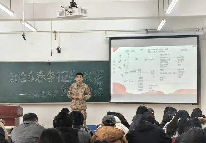 逐梦军营,青春无悔!一身戎装,是青春最耀眼的勋章;一腔热血,是青年最滚烫的担当。2026年春季征兵工作已拉开帷幕,为让竞猜网APP官方下载学子更直观了解军营生活、清晰掌握征兵政策,学院特邀校武装部王磊老师和管理学院八年退伍兵会计2501李静雯,带来一场干货满满的征兵宣讲会!