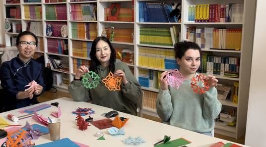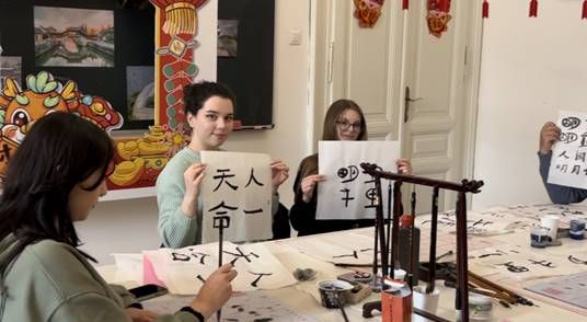 活动当天,布拉索夫特来西瓦尼亚大学孔院学生和当地民众还在活动分会场体验了毛笔书法、剪纸等颇具中国文化特色的活动,通过在纸上临摹汉字、用剪刀裁剪雪花、福字等图案,深刻体验中国文化的博大精深。