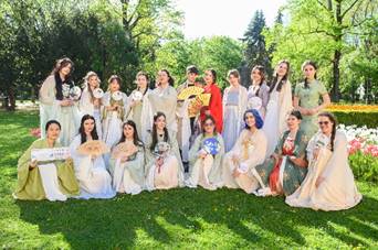 布拉索夫孔院国际中文日系列活动——“华服飘飘,春色袅袅”汉服秀。