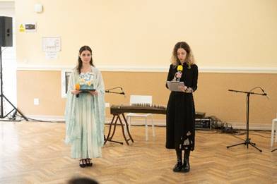 国际中文日活动现场,各类活动精彩纷呈,各方嘉宾共庆佳节。活动伊始,在罗留学生孙雪莹现场演奏古筝曲《战台风》,激昂顿挫的曲调为活动注入了中国传统艺术的韵味。接着,观众欣赏了布拉索夫孔院国际中文日系列活动——“华服飘飘,春色袅袅”汉服秀视频,感受到了中国古代服饰的与欧洲古城的视觉碰撞。