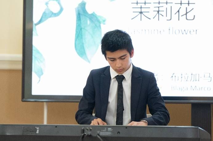 布拉加·马尔科·杨(Blaga Marco Yang)在表演钢琴弹奏《茉莉花》。